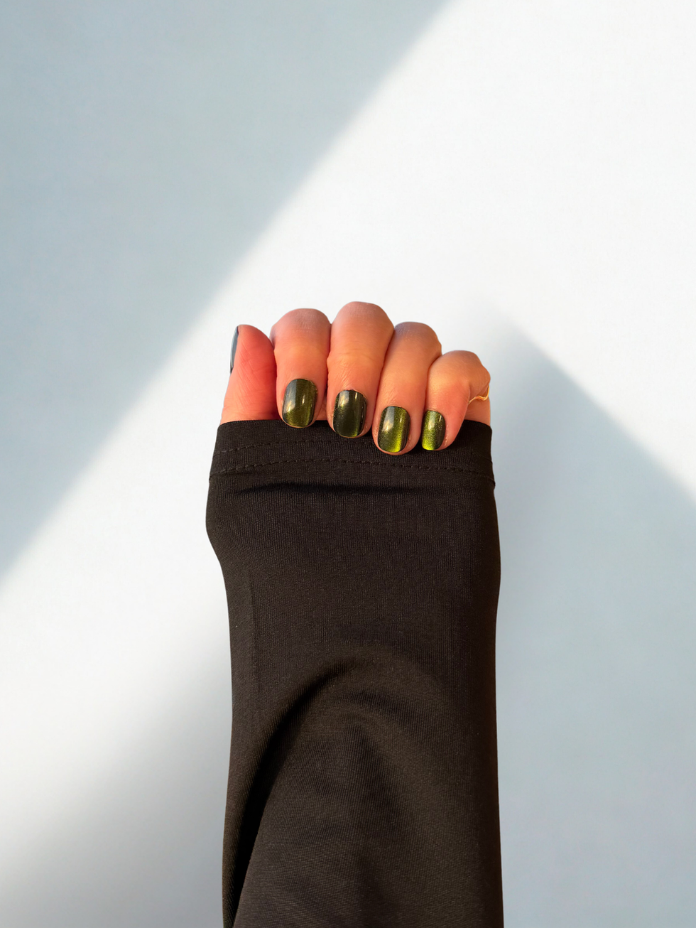 Jade Green Cat Eye is a rich, translucent emerald-jade that looks like you dipped your nails in liquid fortune. Then we added that signature magnetic cat-eye streak with some dark black shadows